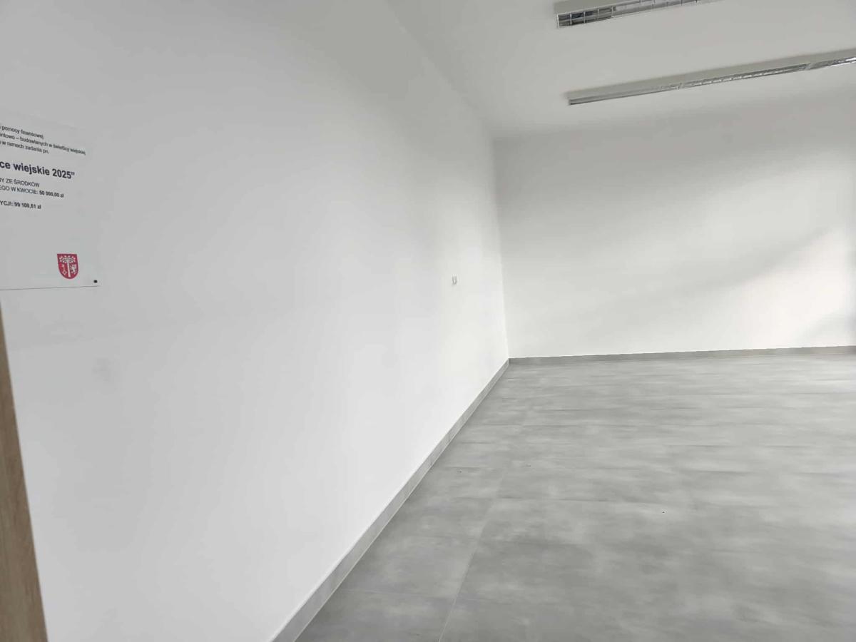 Projekt miała na celu wykonanie prace budowlano-remontowe jednej sali pełniącej funkcje świetlicy wiejskiej i korytarza w tym wymiana drzwi wewnętrznych, rozebranie podłóg drewnianych, izolacja cieplna, ułożenie posadzki płytkowej, okładziny stropów płytami gipsowymi, gruntowanie malowanie ścian i sufitów, instalacja elektryczna.