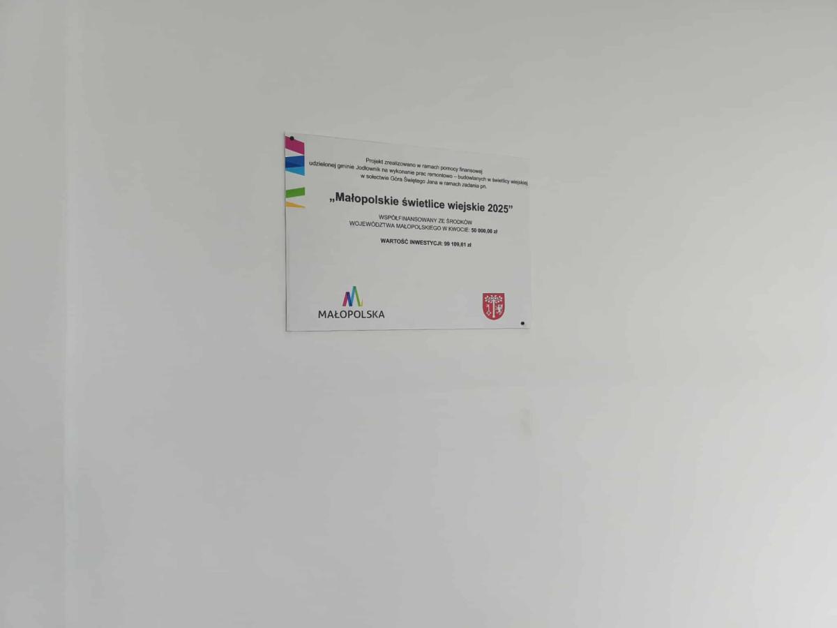 W dniu 12 czerwca 2025 roku gmina Jodłownik podpisała umowę przyznania grantu z Województwem Małopolskim na realizacją projektu pn. „Modernizacje budynku świetlicy wiejskiej w Górze Świętego Jana” w ramach zadania pn. „Małopolskie świetlice wiejskie 2025”